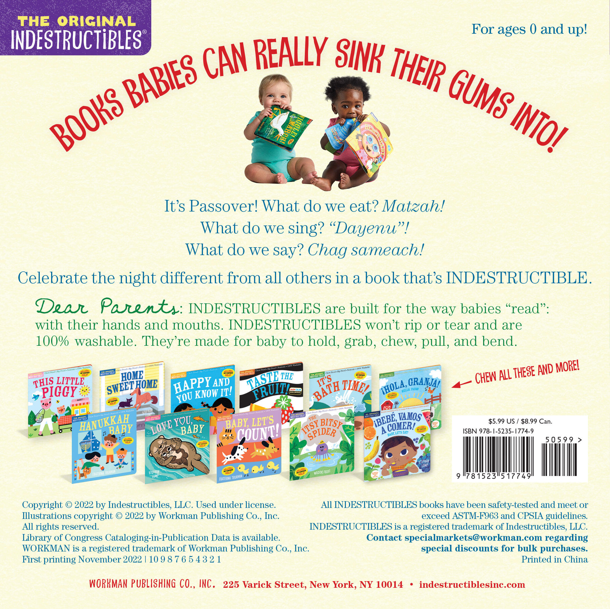 The Original Indestructibles is the trusted series for easing little ones into story time. Beloved by babies and their parents, The Original Indestructiblesare built for the way babies “read” (i.e., with their hands and mouths) and are: