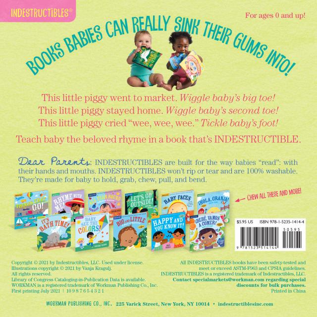 Indestructibles is the trusted series for easing little ones into story time. Beloved by babies and their parents, Indestructibles are built for the way babies “read” (i.e., with their hands and mouths) and are: