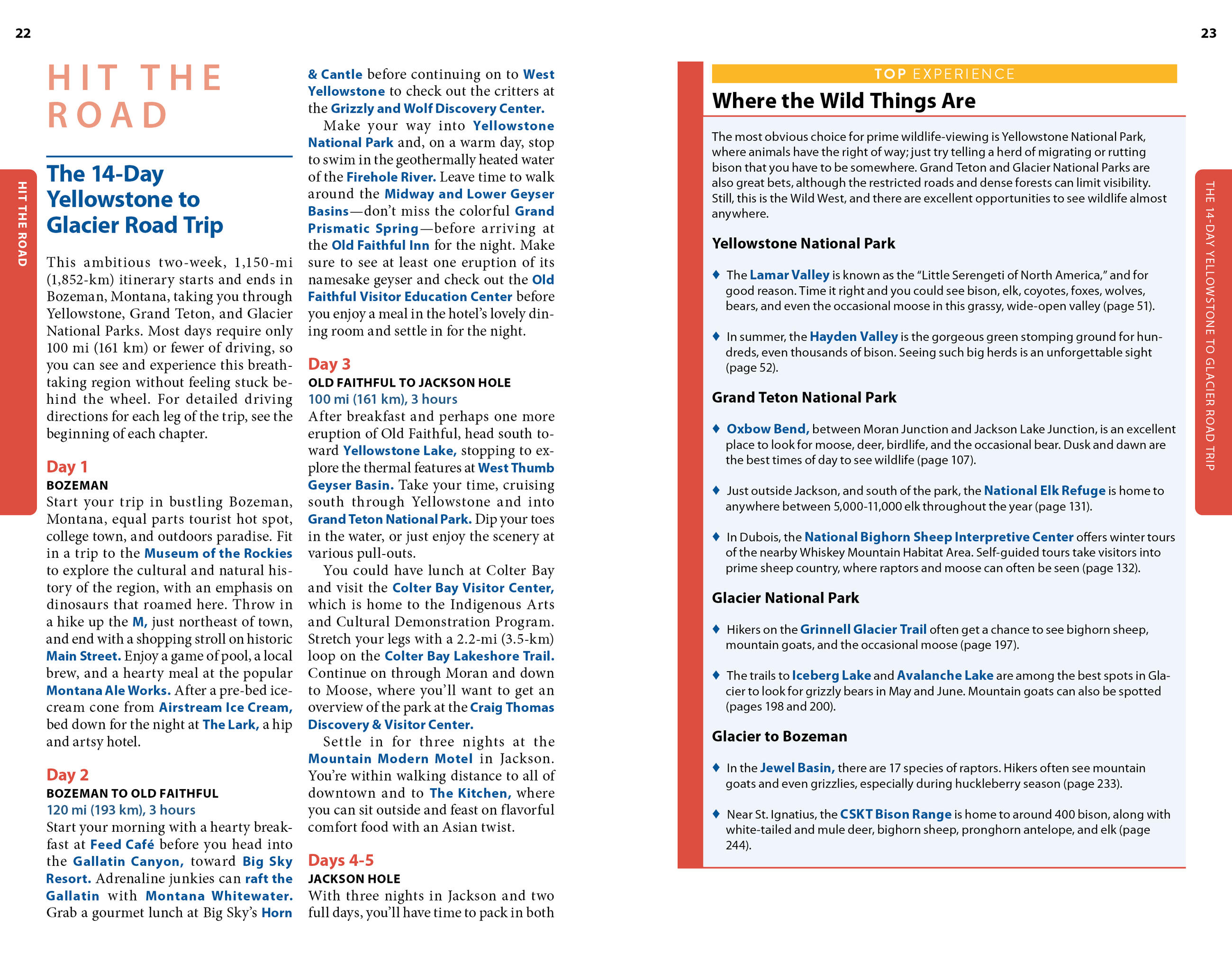 - Eat, sleep, stop and explore: With lists of the best hikes, views, places for wildlife-watching, and more, you can watch Old Faithful from Observation Point, drive the 50-mile Going-to-the-Sun Road, spot everything from bighorn sheep to bears on a wildlife tour of Yellowstone’s Lamar and Hayden valleys, and kick back with a craft beer in Bozeman