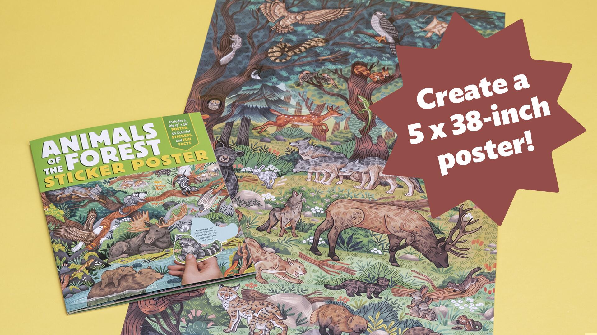 Find tons of animal stickers and mess-free fun with this one-of-a-kind activity book and poster!