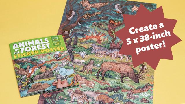 Fill in the woodland scene with forest animal stickers and learn about moose, skunks, foxes, eagles, and more amazing animals along the way. When you’ve finished the project, you’ll have a beautiful piece of art to display.