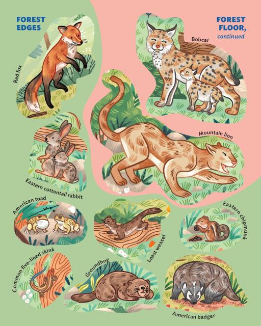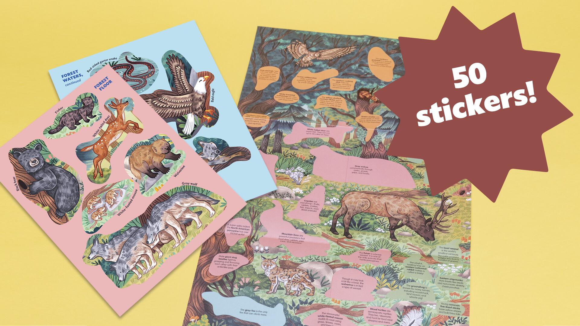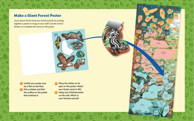 •    Complete the forest poster by putting all 50 animal stickers in the right spots.