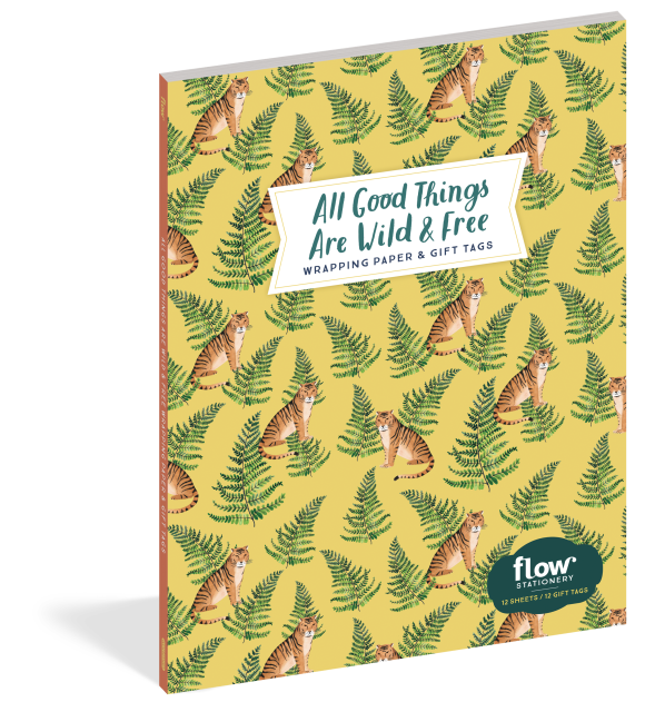 Each colorful illustrated sheet of wrapping paper by Valesca van Waveren is like a gift itself. Her patterns, inspired by the quotation “All good things are wild and free,” from the Henry David Thoreau quotation, remind us of the simple joys of nature: pressed flowers, shiny beetles, sweet figs, noble tigers, and traveling snails. Tear out the decorated sheets along the perforations and unfold them to their full size before wrapping a parcel and affixing a matching gift tag.