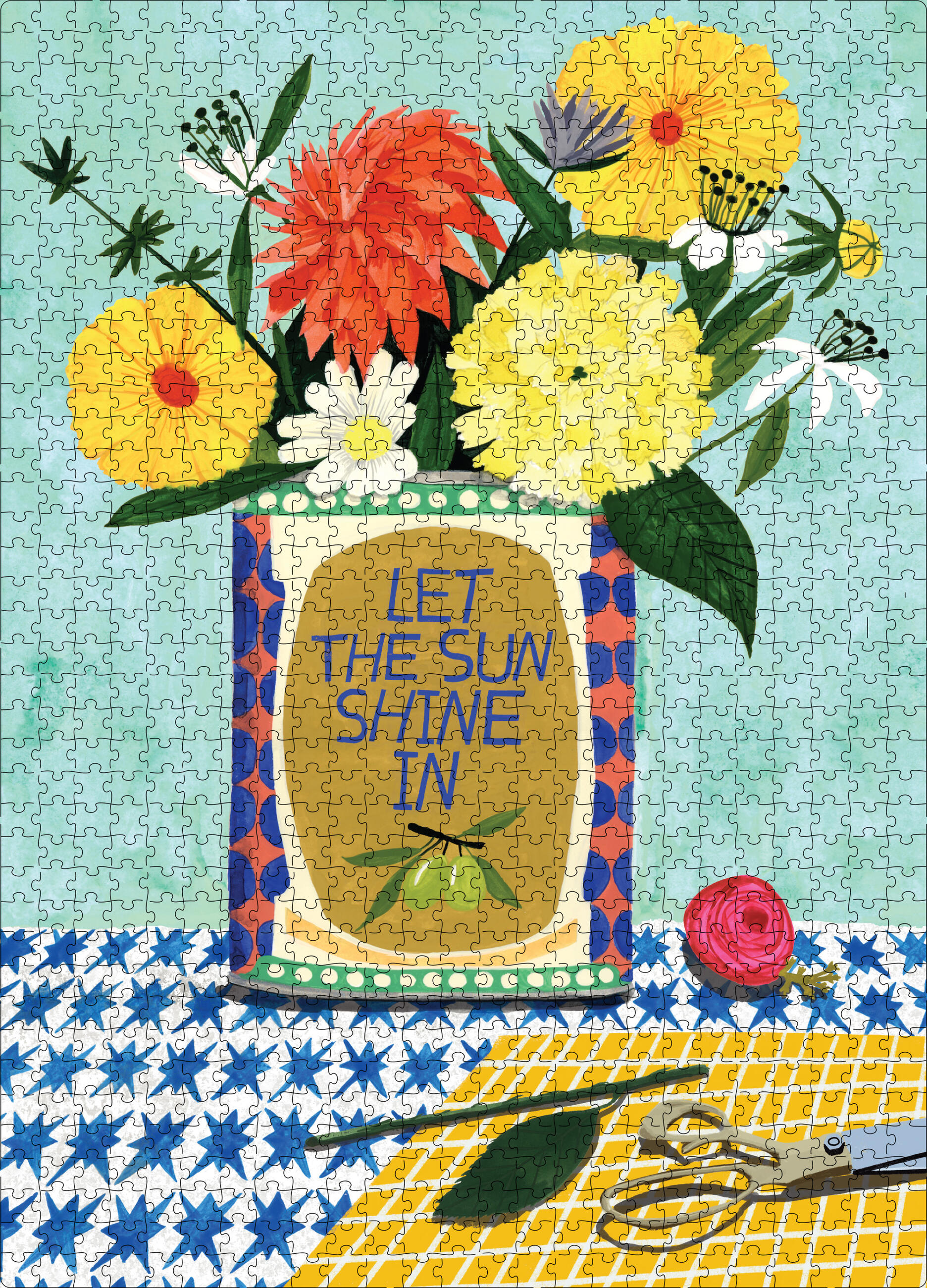 Featuring an exclusive gouache illustration from American artist Anisa Makhoul, this puzzle celebrates the simple and uplifting art of the everyday: an empty Mediterranean olive oil tin filled with a handful of bright flowers in bloom. And with its visual challenges, like the blue patterned tabletop, it will leave you relaxed, satisfied, and in a calm state of mind once you have placed the final piece.