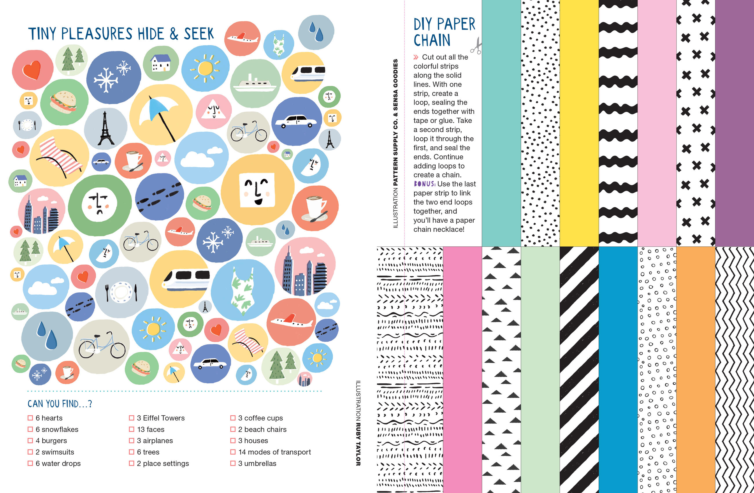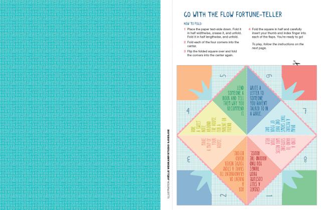 Loop paper strips into a paper chain. Snip out bookmarks. Fold a paper house. Make photo booth props—a silly mustache, a crown—to pose with friends. Bind up a DIY storybook and use it to sketch out adventures and dreams. Construct a paper flower bouquet, a paper terrarium, a fortune-teller with prompts like Lend someone a book and tell them why you recommend it.