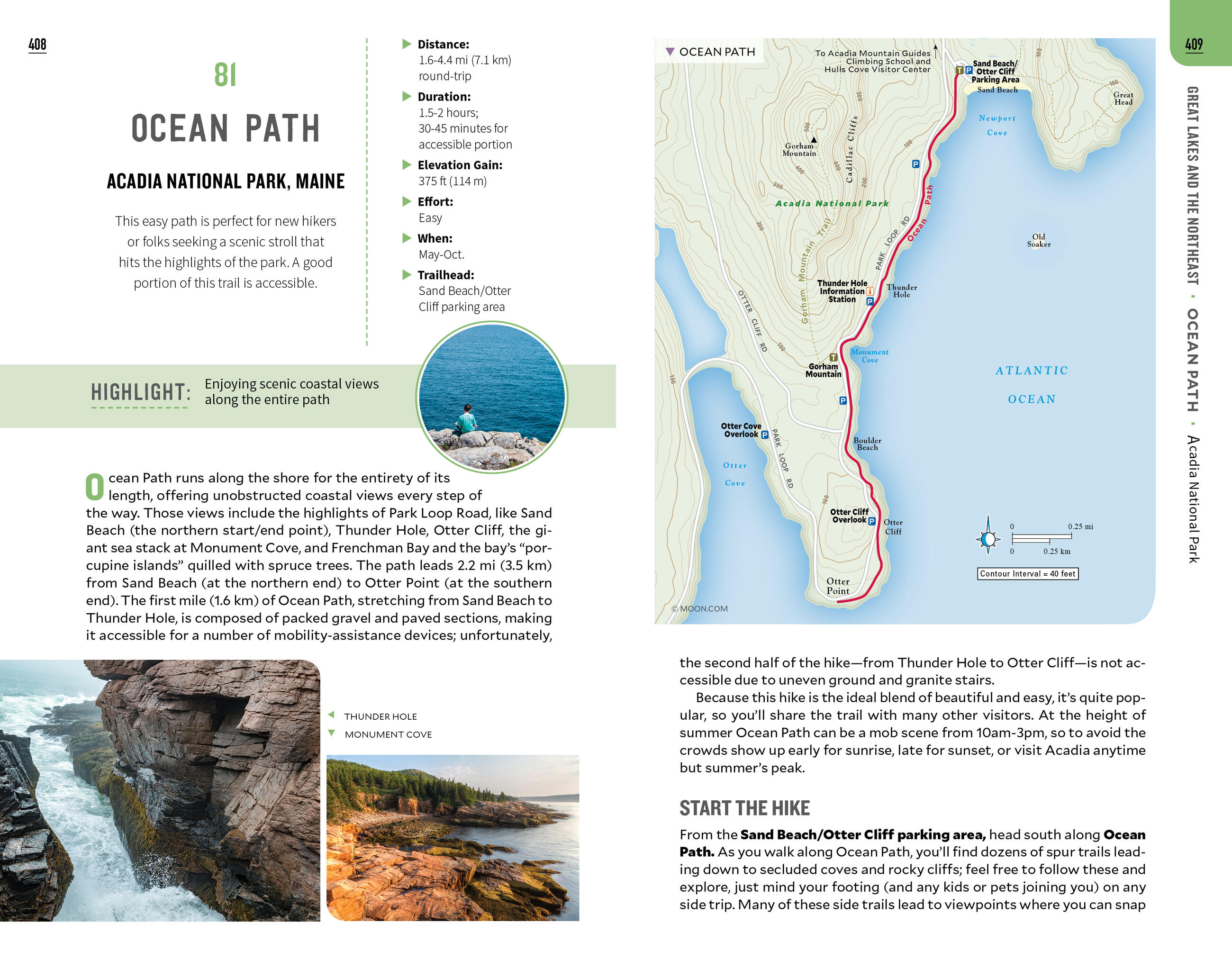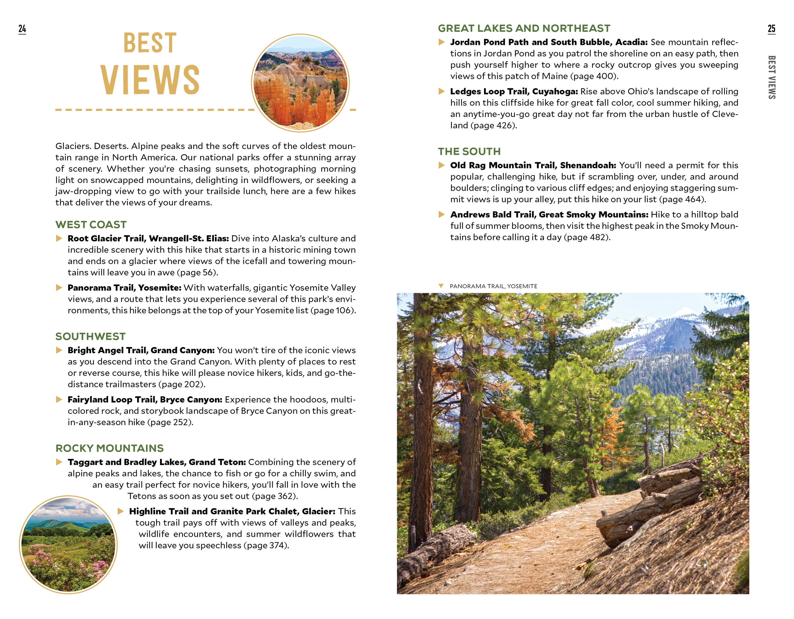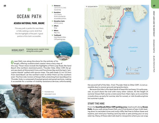 • Coverage of 100 hiking trails across 40 national parks, from Acadia to Zion, organized by region
