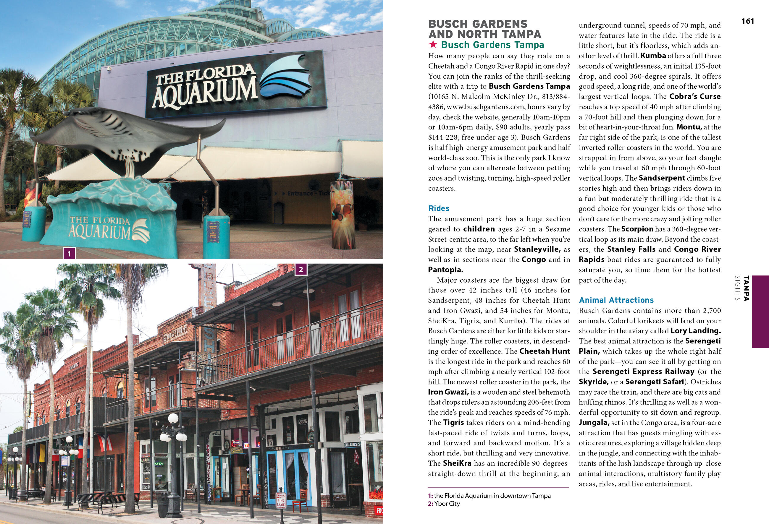 - Top activities and unique experiences: Discover the vibrant performing arts scene in Sarasota or stroll through quaint riverfront towns and secluded island enclaves. Unwind on shell-scattered beaches or spot gators in the swampy Everglades. Ride the coasters at Busch Gardens, browse art galleries in Naples, or catch a college baseball game during Spring Training. Sail through the canals of Tampa, kick back at a beachfront oyster bar, and sip a local brew as the sun sets over the ocean