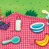 Baby’s at the table—spoon, banana, cheese.