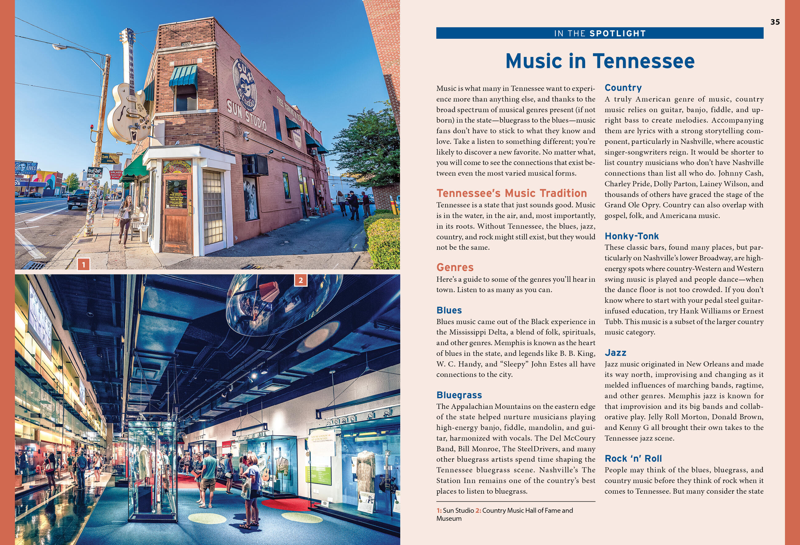 - Can’t-miss music: Catch a performance on the Grand Ole Opry stage or follow in the footsteps of the King at Graceland. Two-step with the locals at a beloved honky-tonk, listen to the strums of bluegrass, or tour studios where legends like Johnny Cash recorded their hits