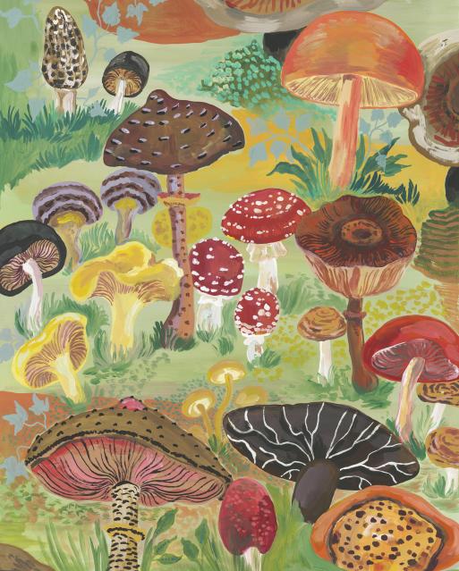 A morel, a pair of butter-yellow chanterelles, a beautiful speckled red agaricus—in this budding grove of magic mushrooms, retrace the magic of Nathalie Lete’s imagination, and revel in her breathtaking colors and imagery.