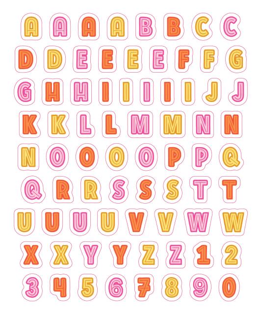 Say it, shout it—spell it! This delightful collection of stickers is devoted entirely to the alphabet and the joy of matching a font to every mood and occasion. These letter stickers are perfect for spelling everything from your name to your favorite song lyrics—on your planner, photo album, notes, invitations, and anything that needs a touch of whimsy!