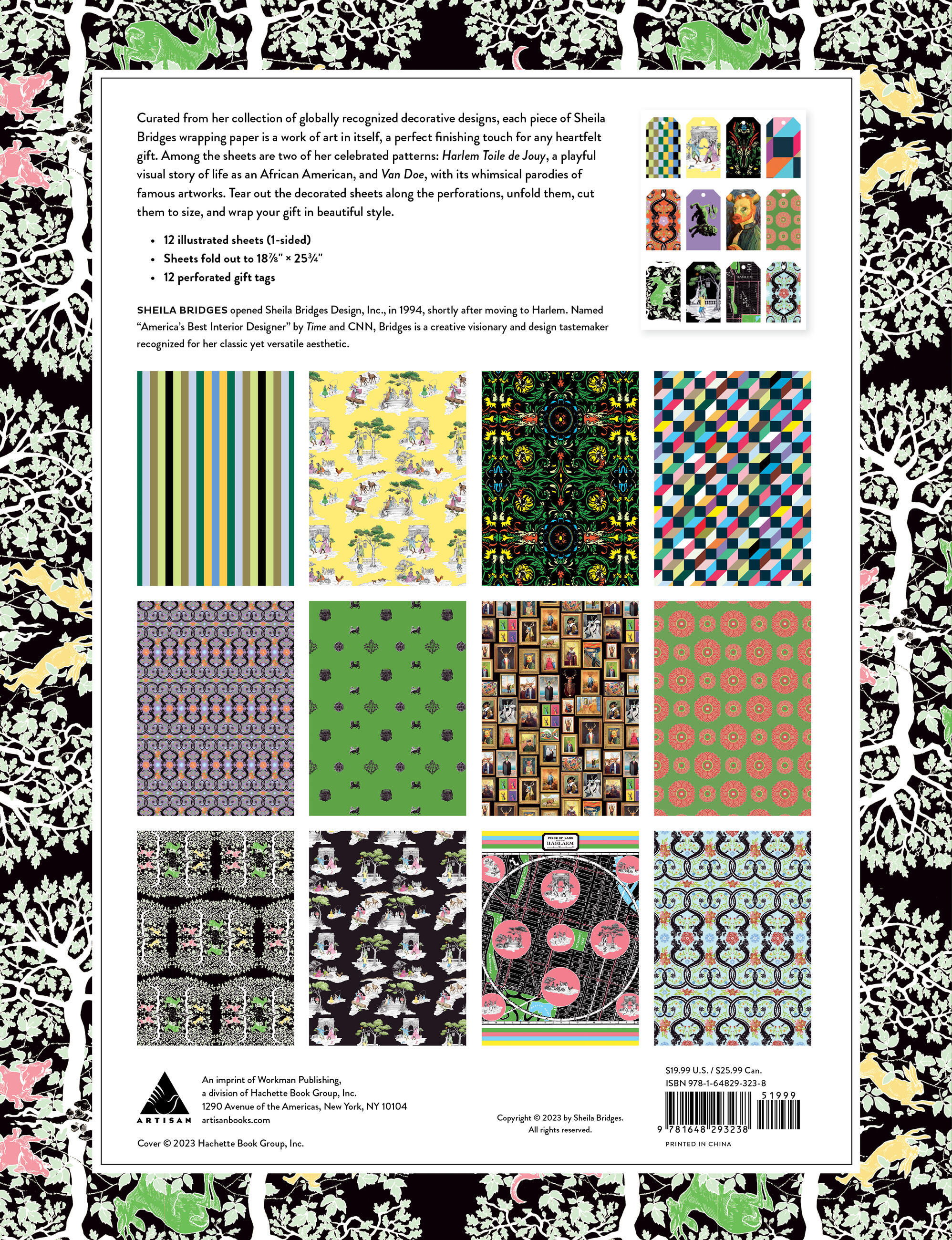 A collection of 12 stunning wrapping paper sheets and matching gift tags from beloved interior designer Sheila Bridges.