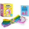 - Specifications: Includes everything you need to make 3 projects including a 3-inch embroidery hoop in which to stitch and display designs, 2 tapestry needles, 7 skeins of embroidery floss, and 3 pieces of 4 x 4 inch cotton Aida cloth