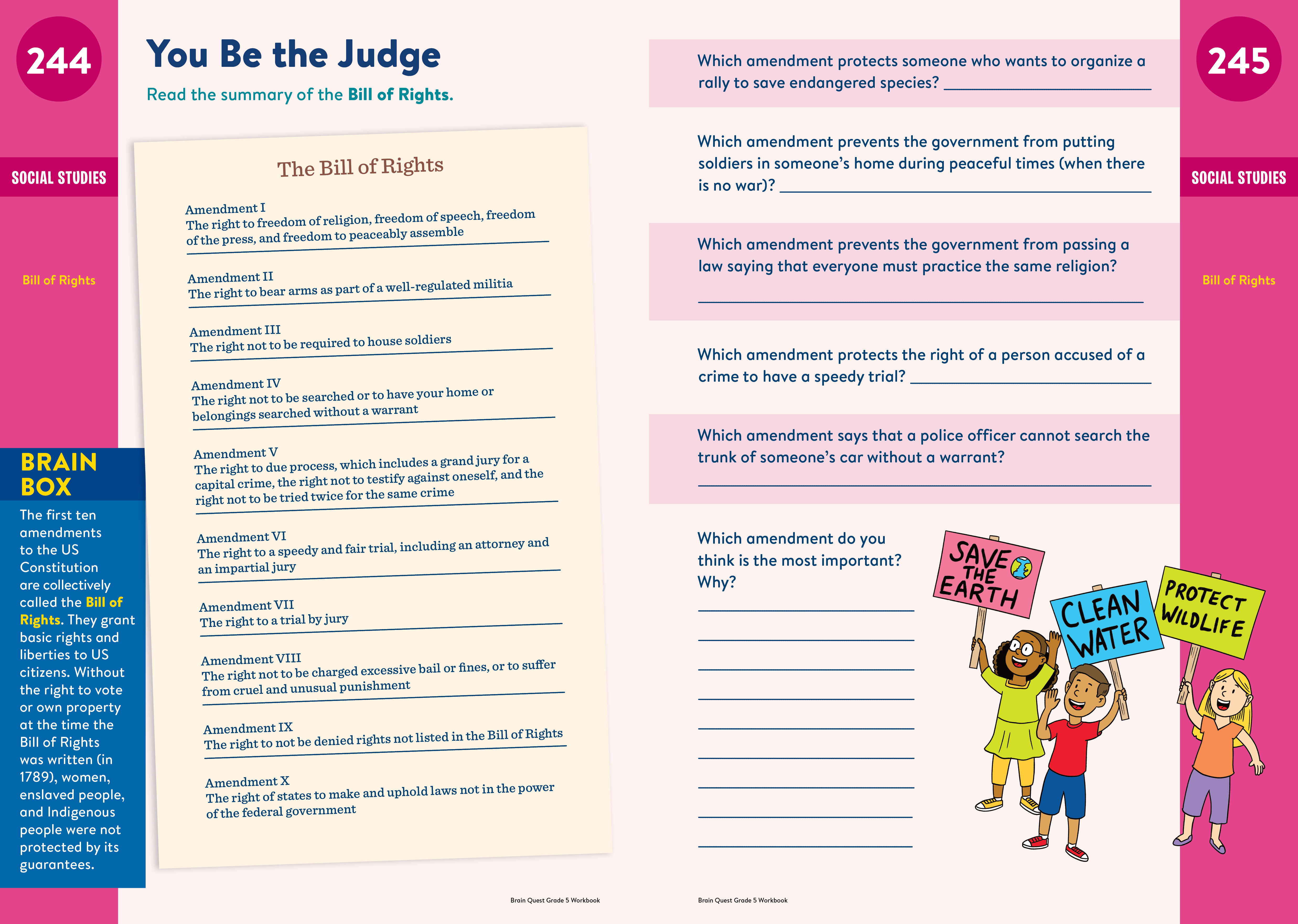 Loved by kids, teacher approved, and trusted by parents, Brain Quest Grade 5 Workbook reviews and reinforces what children are learning in the classroom in an instantly engaging, entertaining way. Each page is jam packed with fun activities, practice exercises, and games covering vocabulary, language arts, math word problems, multiplication and division, fractions and decimals, geometry and measurement, social studies, science, and much more.
